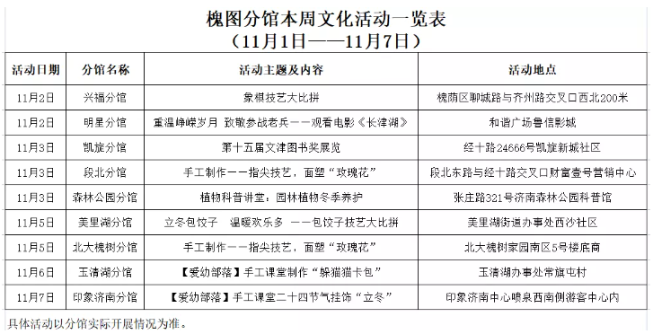 活动预告|槐荫区图书馆分馆活动预告(11月1日-11月7日)