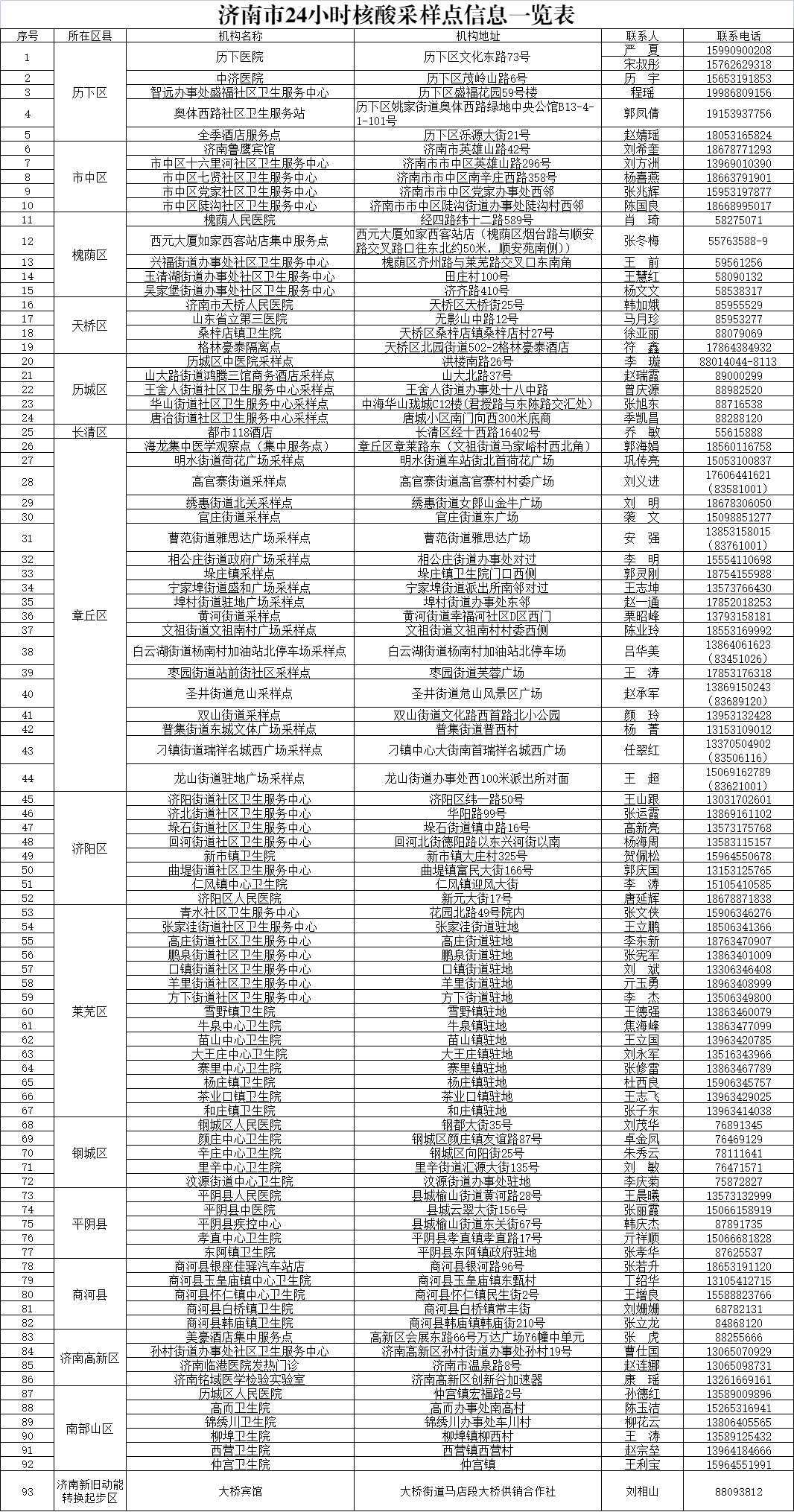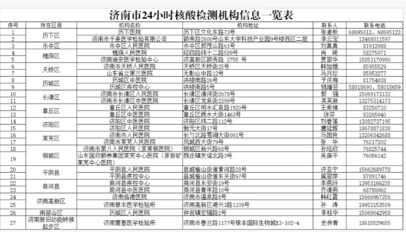 02最新!济南公布93家24小时核酸检测机构和采样点名单