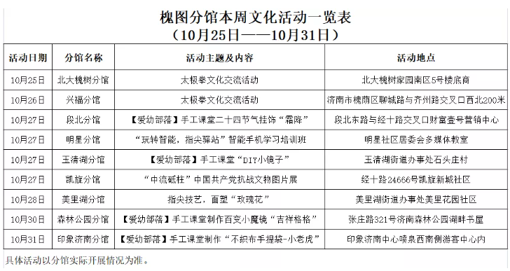 活动预告|槐荫区图书馆分馆活动预告(10月25日-10月31日)