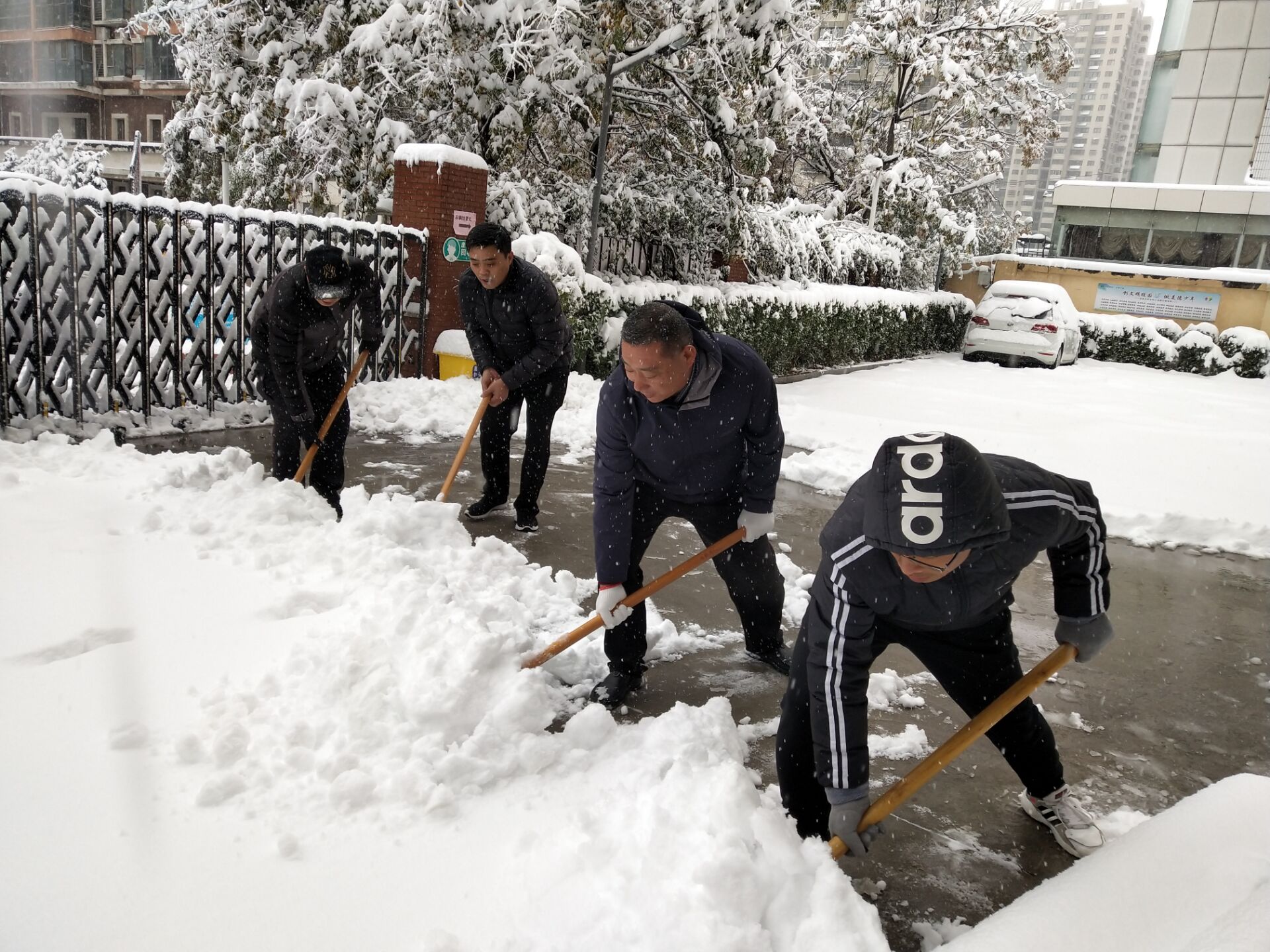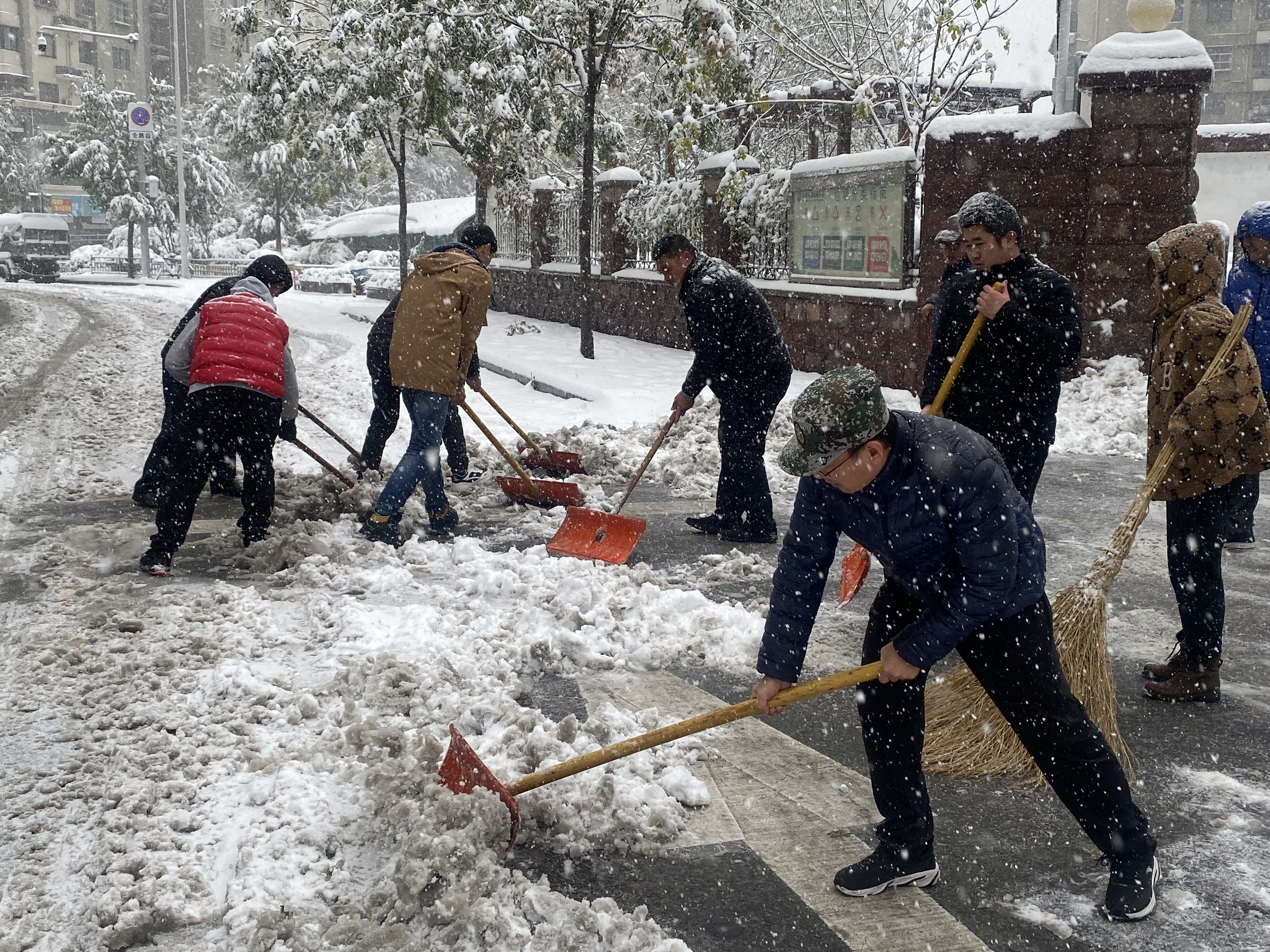 为了尽快落实扫雪除冰工作,区人社局党组书记、局长李国安带领局党员领导干部迅速行动,联合“双报到”单位志愿者等开展清扫工作,严格落实“门前五包”责任制,全力清除积雪,保障辖区居民安全出行。
