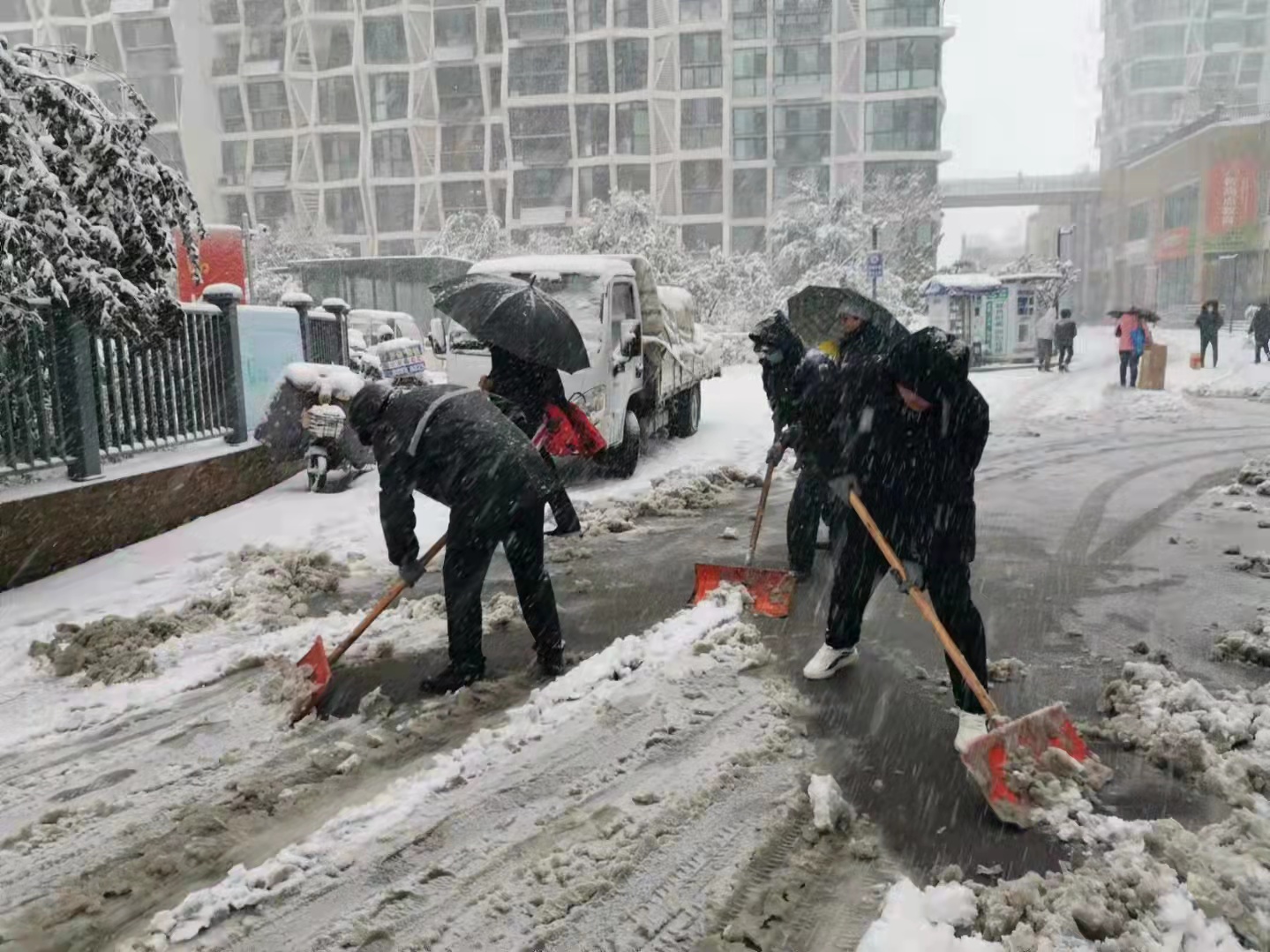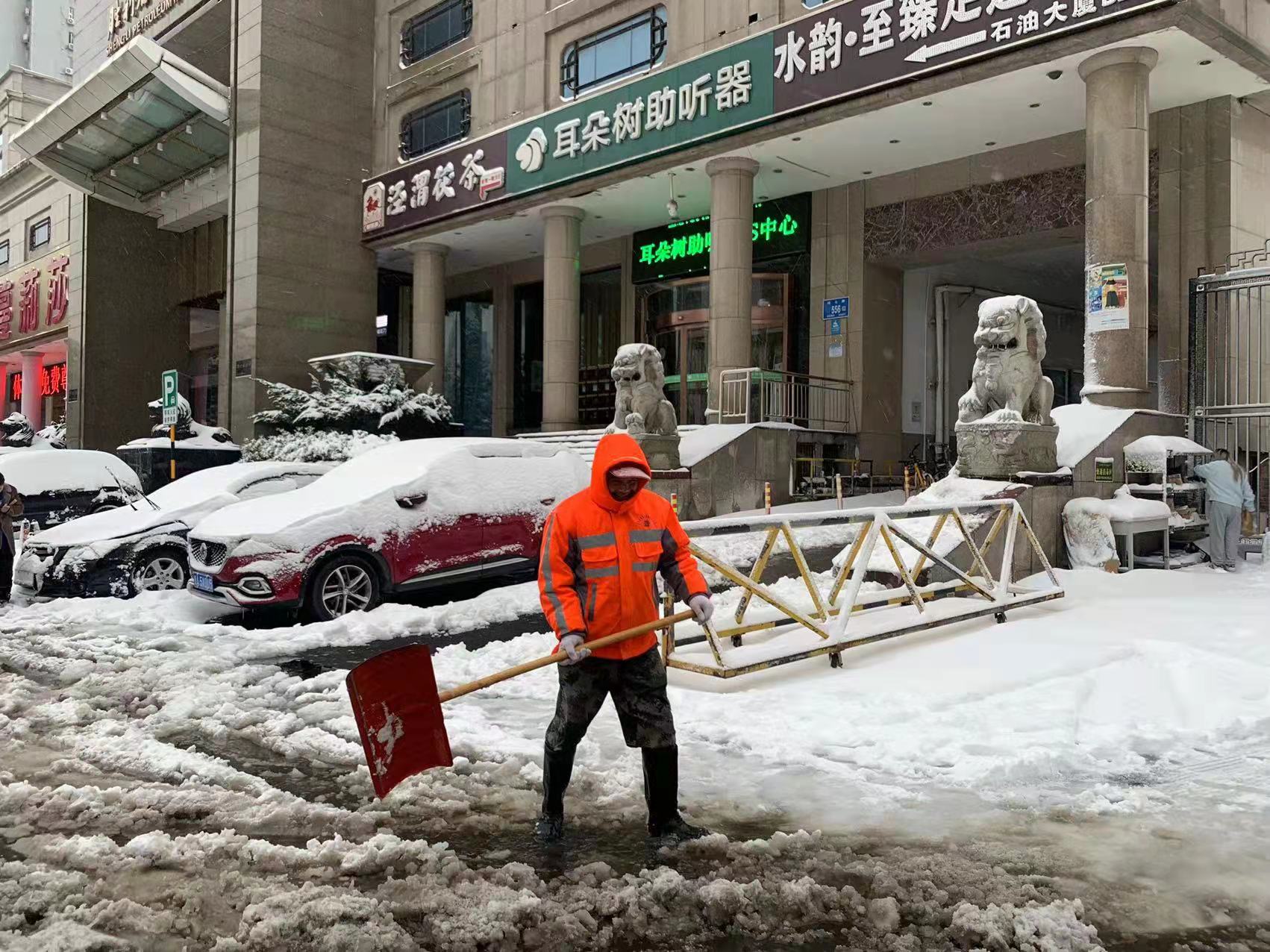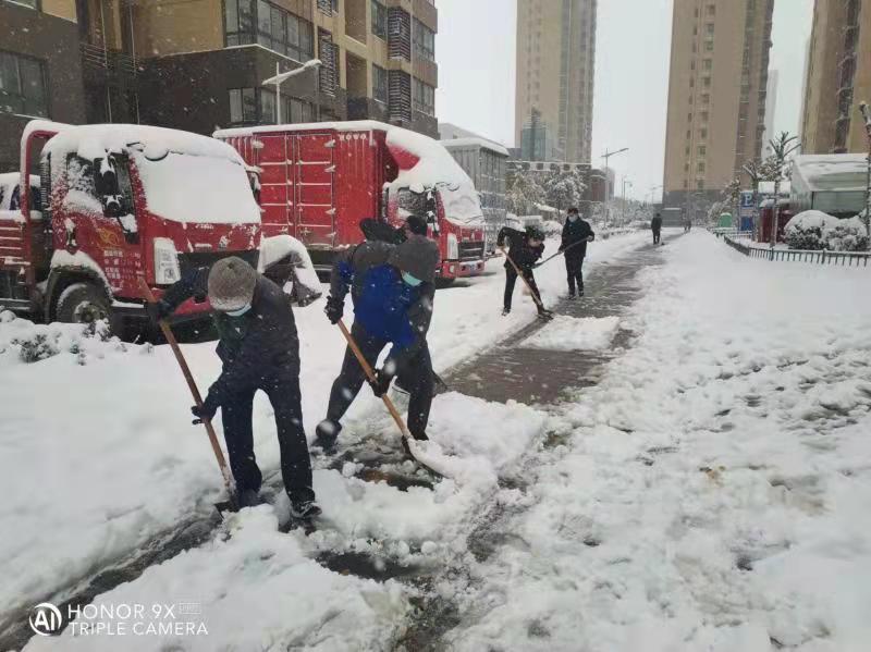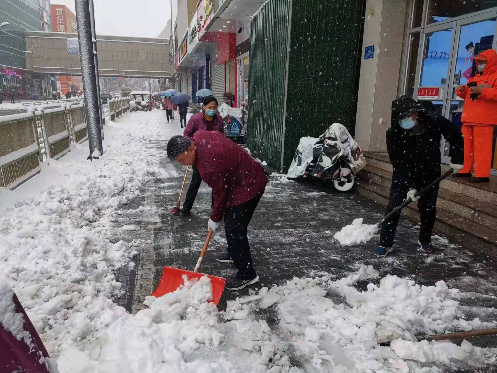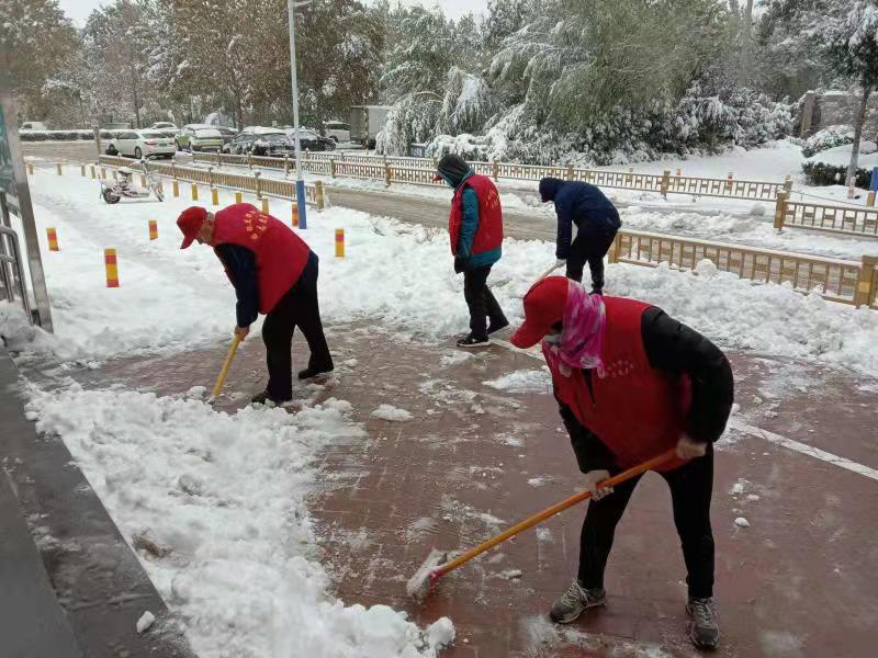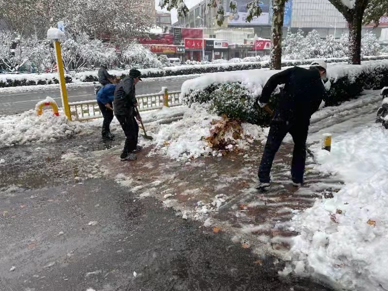 区住建局干部职工迅速行动,积极开展积雪清扫工作,严格落实“门前五包”责任制,全力清除积雪,保障辖区居民安全出行。