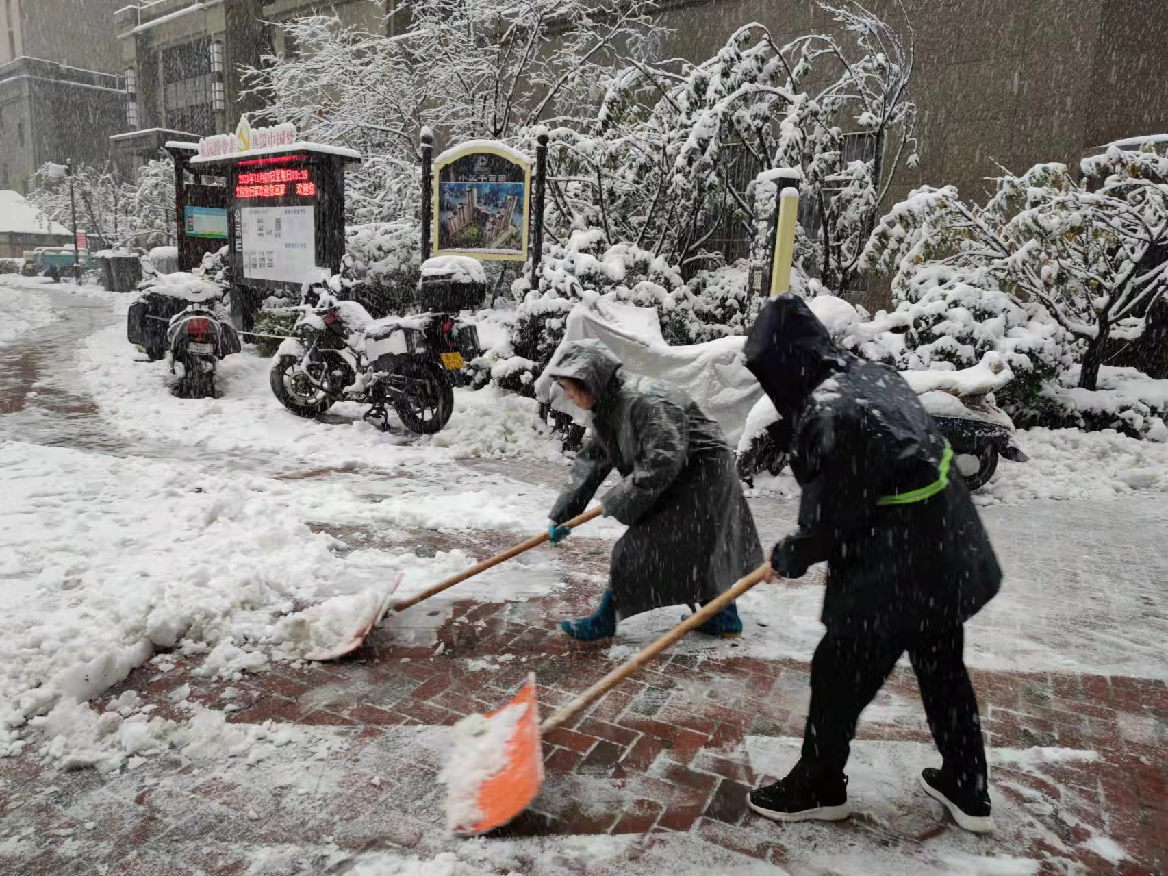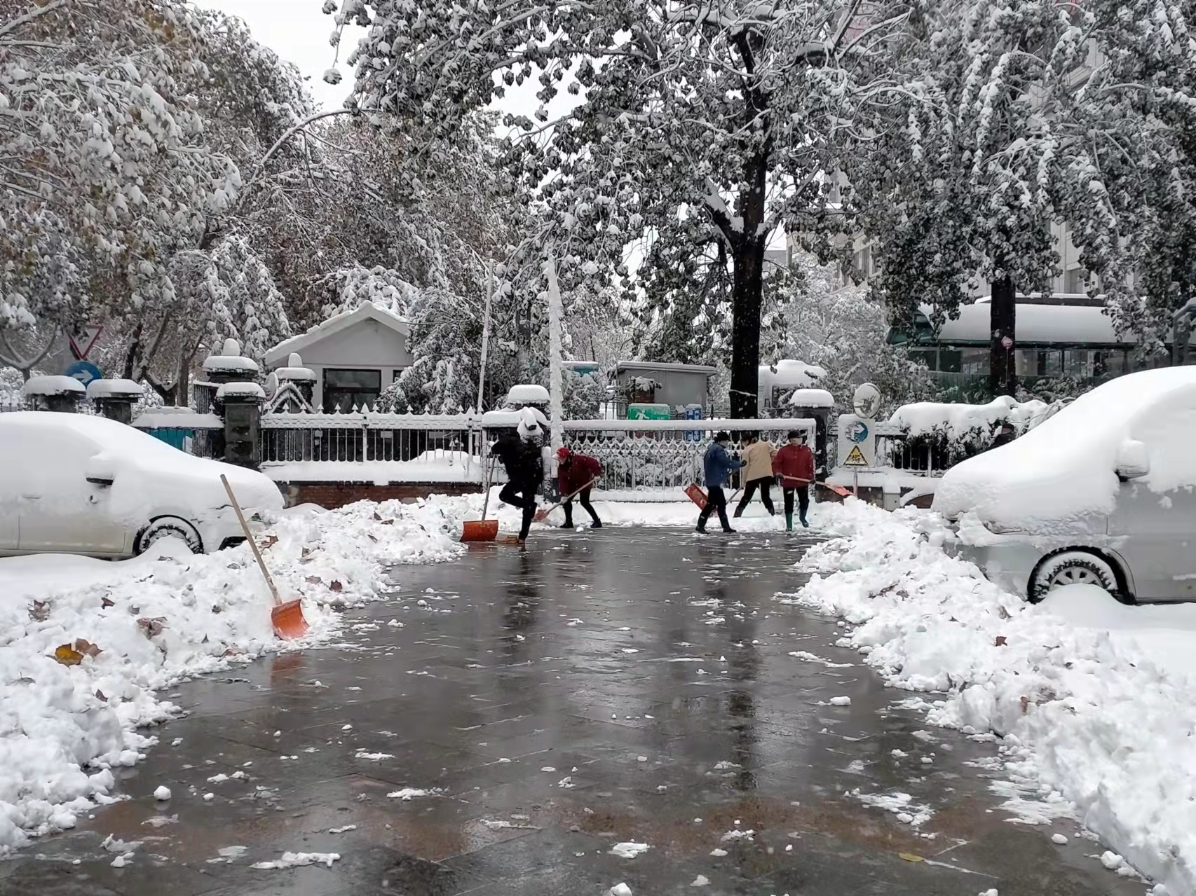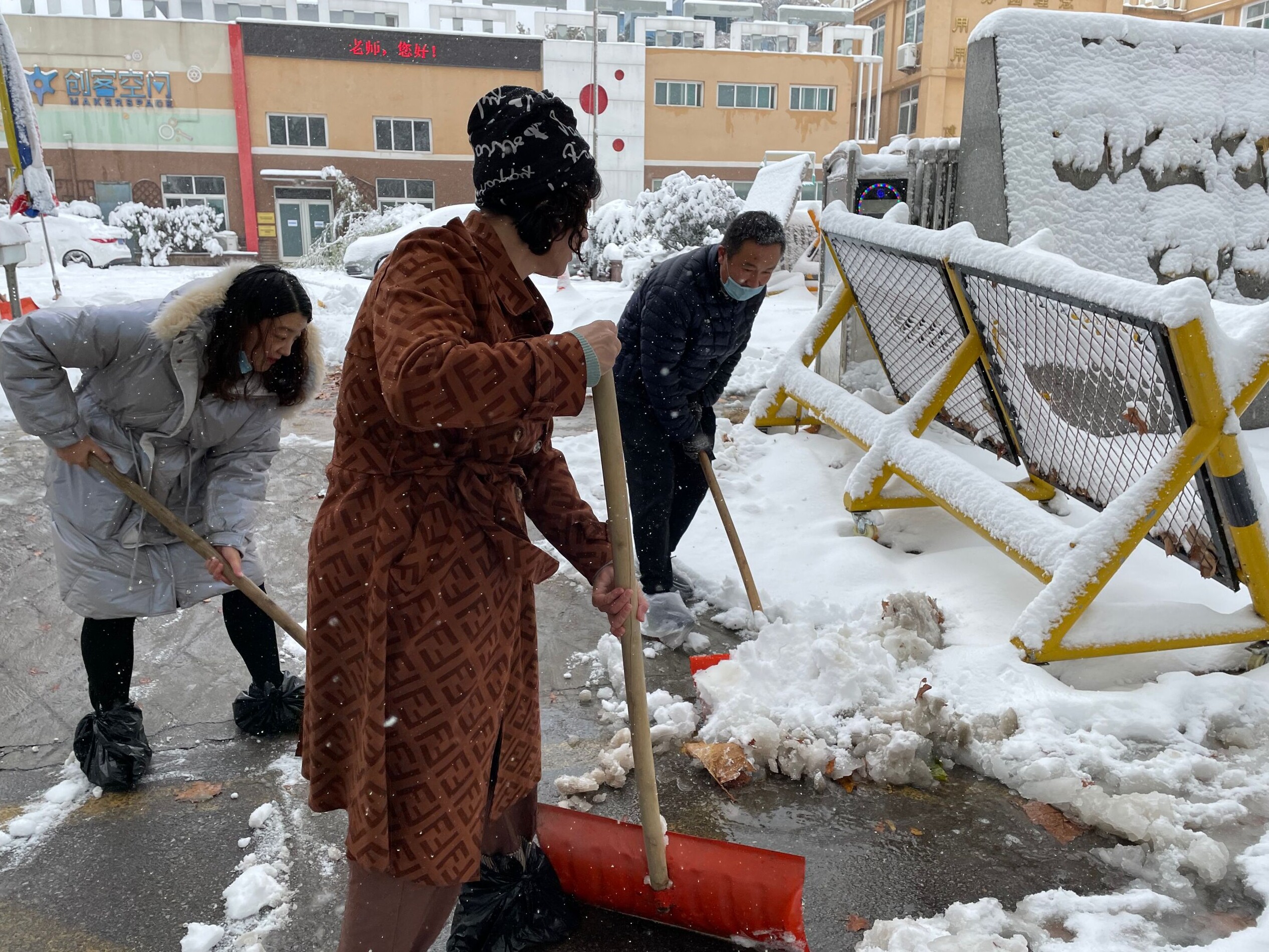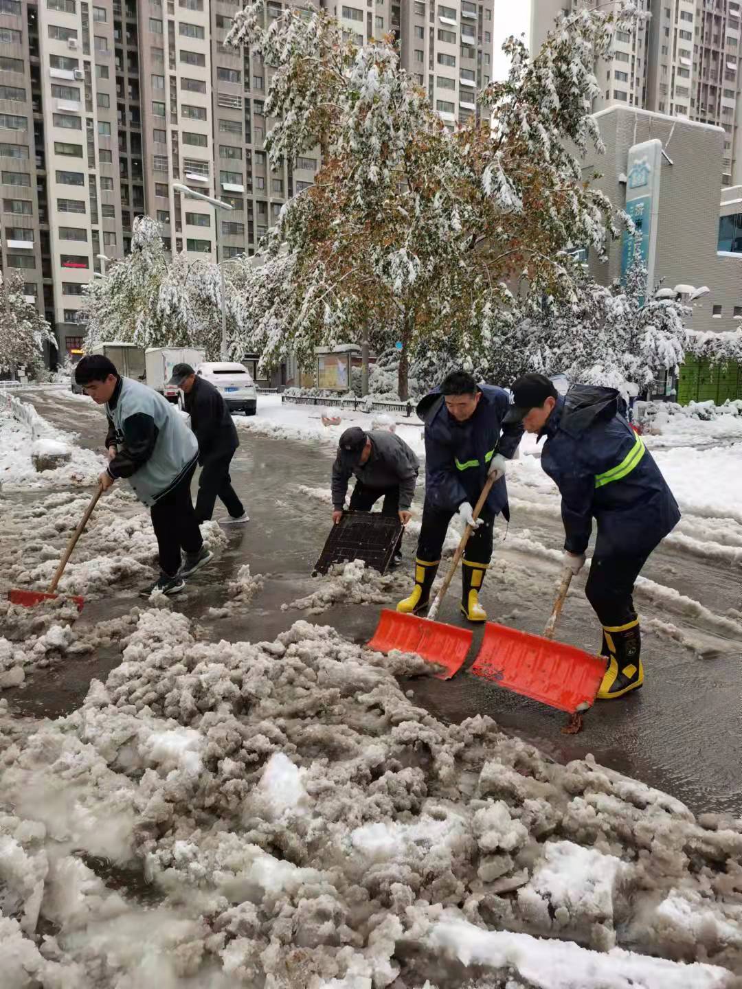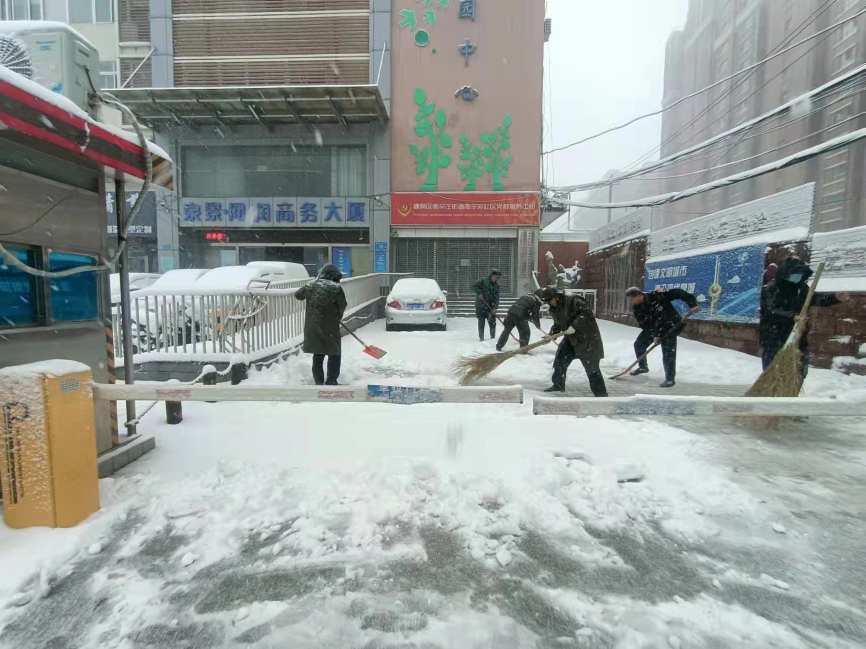 区住建局干部职工迅速行动,积极开展积雪清扫工作,严格落实“门前五包”责任制,全力清除积雪,保障辖区居民安全出行。