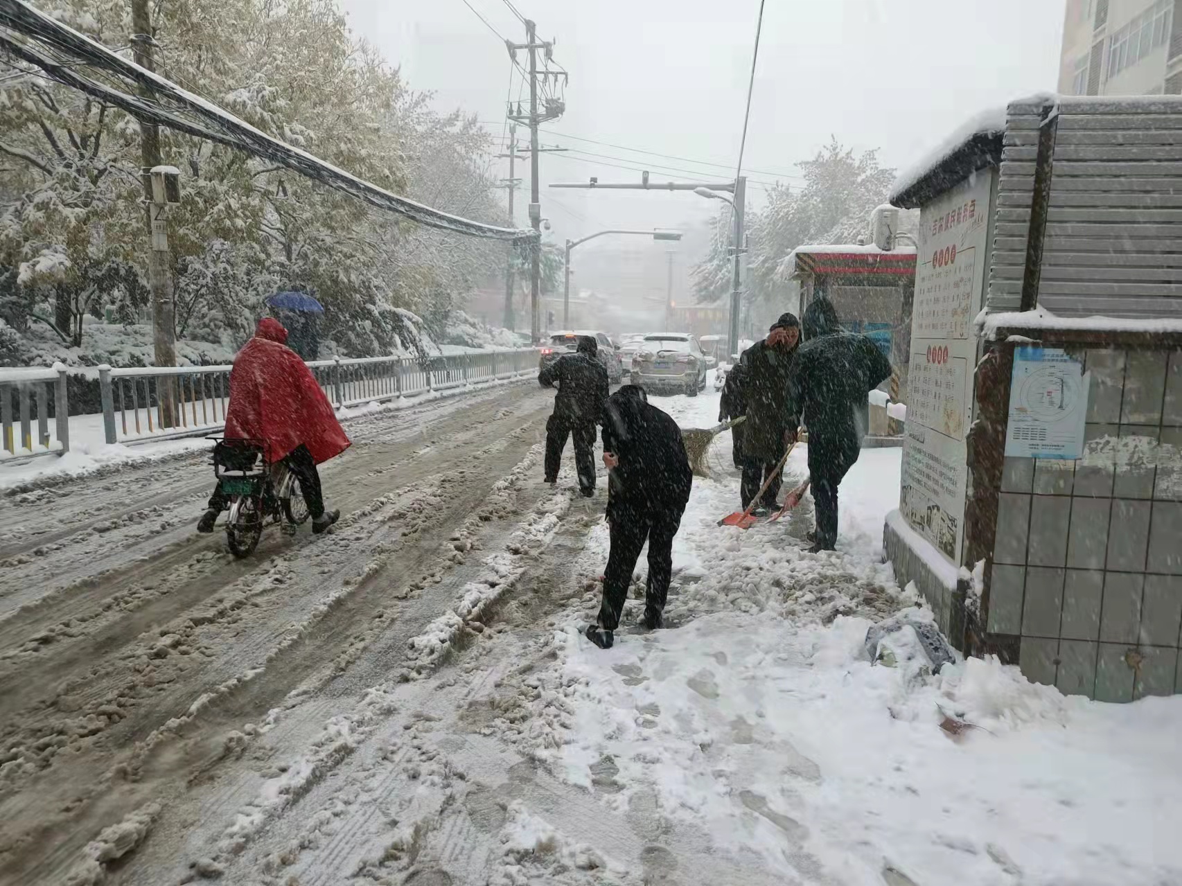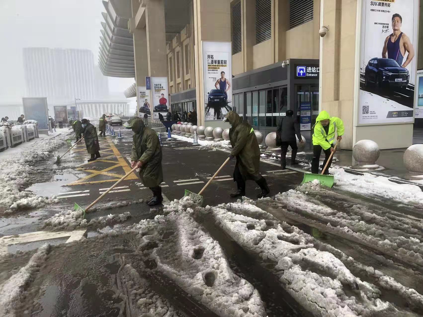 兴福街道严格落实“五包”责任制,迅速响应,凝聚机关、村(社区)两委、志愿者、辖区商户等多方合力,人力、机械密切配合,提高除雪效率,持续做好重点路段、单位积雪清理和防灾工作,全力保障辖区居民出行安全。济南西站综合服务中心倾力出动,撒盐除雪,全力保障旅客出行安全、畅通、有序。