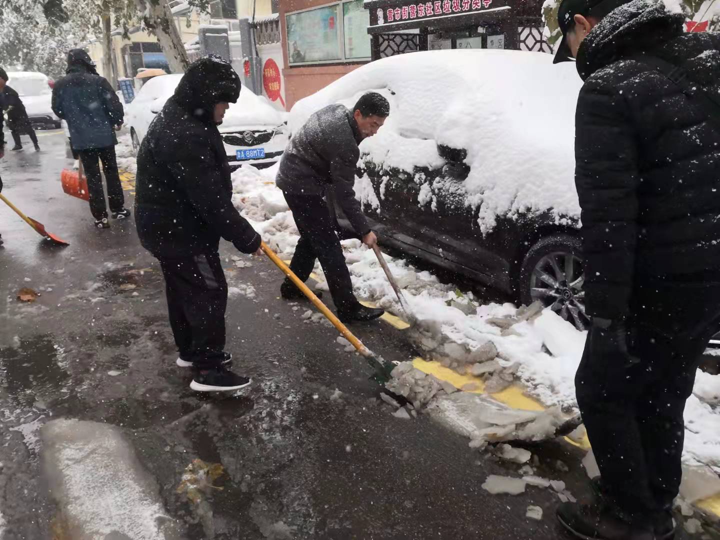 营市街街道迅速响应,组织机关干部、社区两委、应急队员、物业工作人员、党员志愿者等积极行动,清理辖区道路积雪,方便居民出行。相关科室和社区及时组织力量协助“门前五包”商户清扫主干道路积雪。