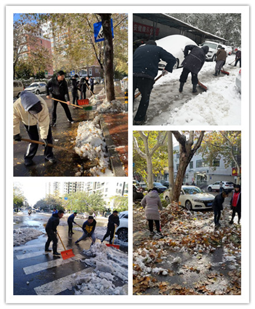 雪情就是命令!为保障城区道路的正常运行,自11月7日开始下雪后,道德街街道立即启动应急响应,组织街道应急抢险队、党员先锋队及辖区志愿服务队等多支队伍,动员街道机关、社区居委会全体工作人员及热心居民等一百余人参与到积雪清理工作中去,大家冒着严寒风雪,分别对辖区的主要干道经十路、经六路、经七路、经四纬十二路的非机动车道、人行道和主要交通路口的积雪及树木断枝进行了清理。同时,街道按照“门前五包”责任制度,通知辖区各小区物业公司、各单位、商铺自行清理门前的积雪和树木断枝。截至7日晚八点左右,已将主要干道的积雪和断枝清理完毕。