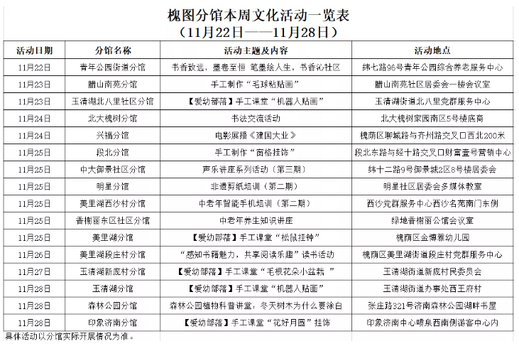 活动预告|槐荫区图书馆分馆活动预告(11月22日-11月28日)
