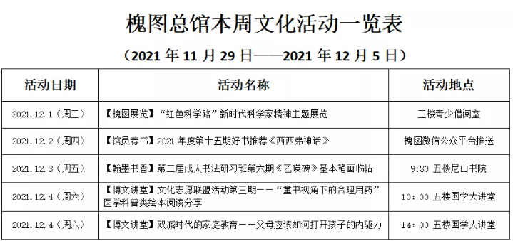 活动预告|槐图本周活动上新啦!(11月29日-12月5日)