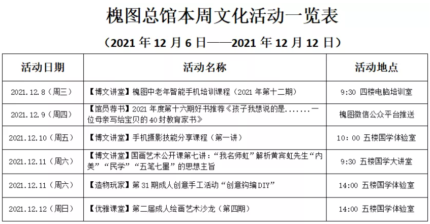活动预告|槐图本周活动上新啦!(12月6日-12月12日)