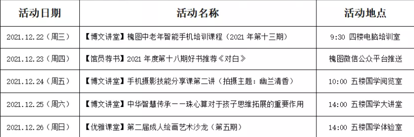 活动预告|槐图本周活动上新啦!(12月20日-12月26日)