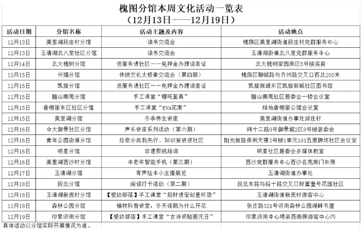 活动预告|槐荫区图书馆分馆活动预告(12月13日-12月19日)