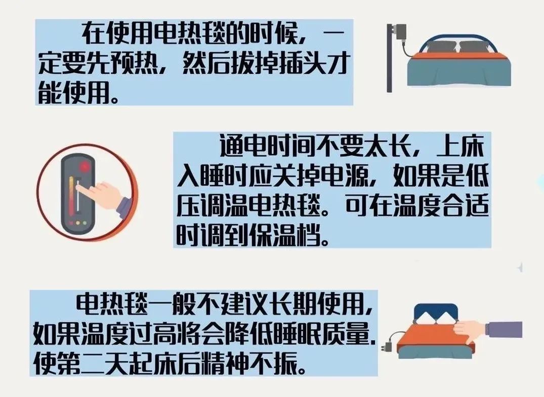 2019年1月10日,安徽省蚌埠市玉博园某小区一住户家起火。所幸邻居及时发现火情,消防队员赶到后将火扑灭!据了解,该业主一早上班,刚去公司就被通知家里失火了!原来是最近天比较冷,业主就用上了电热毯,但是该业主出门时忘了把电热毯的电源关掉,电热毯就一直在加热中,直到起火,引燃了被子,进而导致火灾发生。