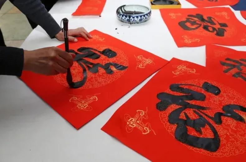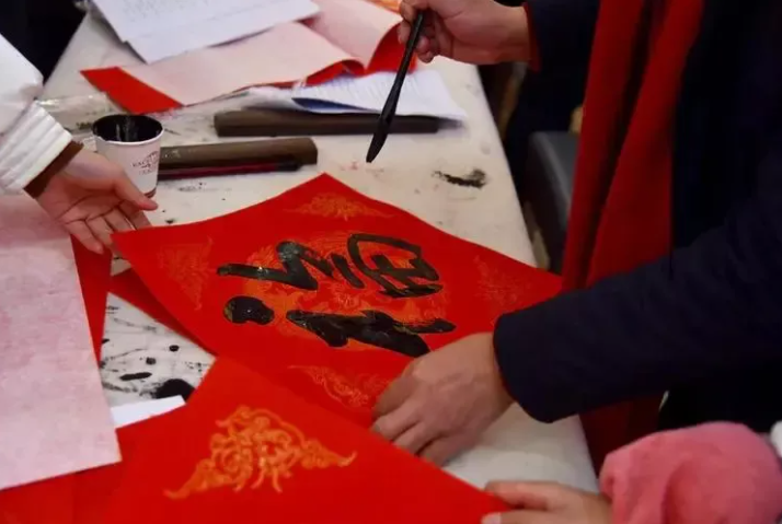 5、美里湖西沙村分馆1月12日写福字,送春联