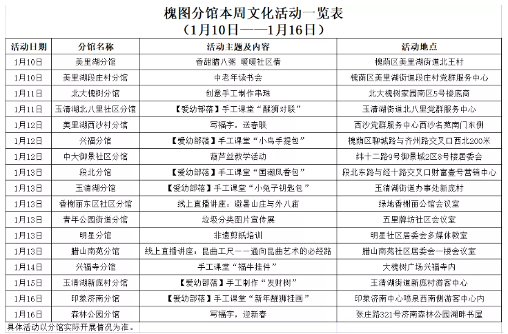 活动预告|槐荫区图书馆分馆活动预告(1月10日-1月16日)