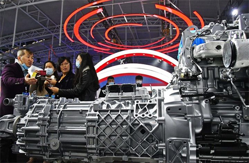 潍柴集团展出的13G动力总成模型。新华社发(孙文潭 摄)