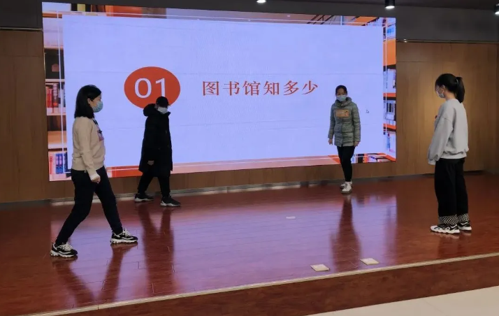 槐图殷老师宣讲完游戏规则后,参赛读者以抽签的形式随机分为红、黄、蓝、绿四队,在第一关“图书馆知多少”环节中,经过激烈的角逐,绿队遥遥领先。