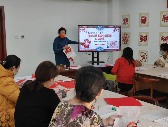 为弘扬传统文化,传承传统手工艺术,丰富广大读者的文化生活,2月9日上午,槐荫区新时代文明实践中心、槐荫区图书馆举办的传统民俗活动——非遗剪纸公益课堂在五楼国学体验室举行,共有十余位读者参与活动。