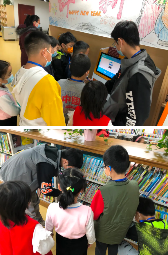 随后,图书馆工作人员带领小读者们详细了解了各类借阅设备的使用方法,接下来的岗位体验环节,小馆员们被分成两组,开始了今天的图书馆小馆员体验。来到工作岗位,小读者们非常兴奋,大家有的负责维持馆内秩序、有的整理书籍、有的帮助读者借阅图书,忙的不亦乐乎。