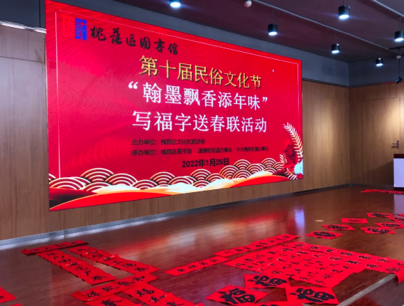 新春佳节将至,为营造喜庆、祥和的节日氛围,丰富广大读者的文化生活,1月26日上午,槐荫区新时代文明实践中心、槐荫区图书馆在六楼多功能厅开展第十届民俗文化节——翰墨飘香添年味·写福字送春联活动,为读者送上新春祝福。