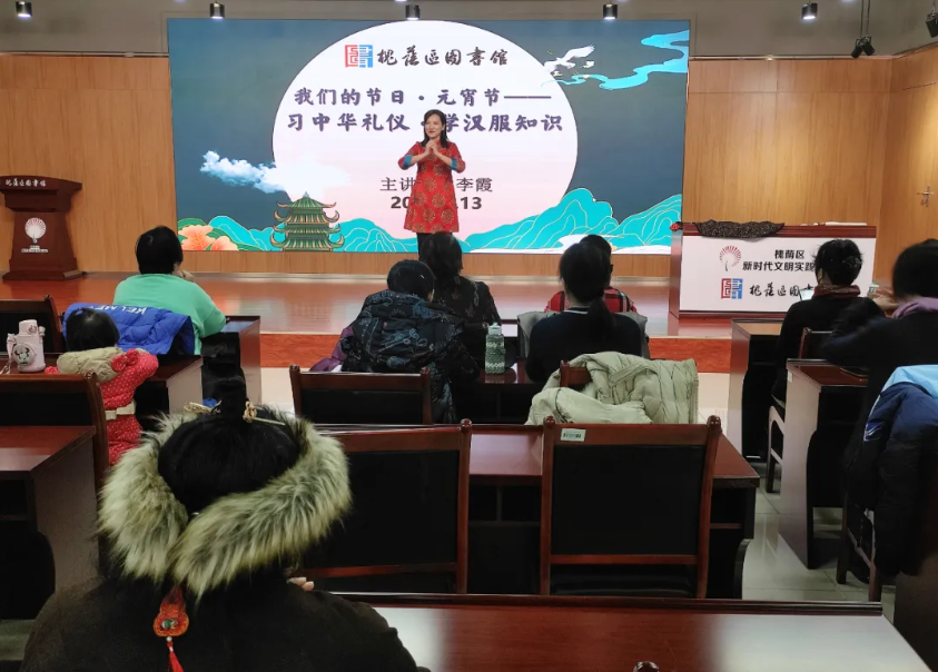 着我汉家衣裳,兴我礼仪之邦。中国传统文化博大精深、源远流长,褒衣博带之间,彰显了华夏民族礼仪之邦的风采。为弘扬传统文化,增强民族自信,丰富广大读者的文化生活,2 月 13 日上午,槐荫区新时代文明实践中心、槐荫区图书馆举办元宵节传统文化活动——中华传统礼仪及汉服知识讲座。本次活动,由传统文化讲师李霞老师主讲。讲座吸引了数十位传统文化爱好者共同参与。