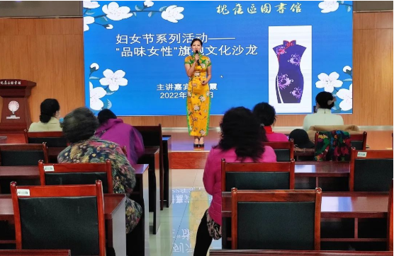 华装绮丽,风姿绰约,是身着旗袍的中国女性形象,为庆祝“三八”国际妇女节的到来,丰富女性读者的精神文化生活,槐荫区新时代文明实践中心、槐荫区图书馆在3月8日上午举办了妇女节系列活动——品味女性·“古典风韵”旗袍文化沙龙,共有20余位读者到场参与活动。
