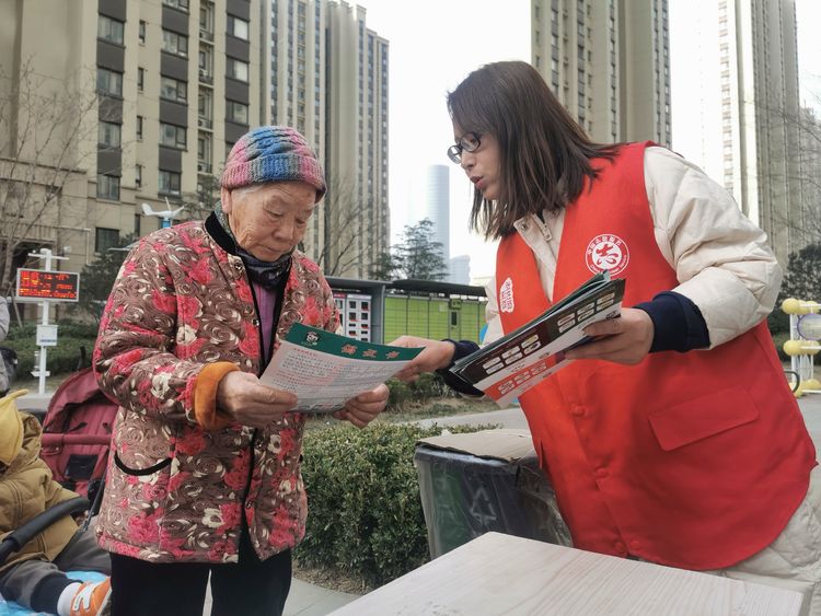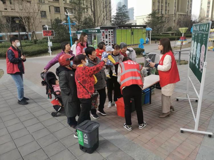 在社区广场开展分类知识宣讲,向居民发放生活垃圾分类宣传单,面对面讲解垃圾分类的标准及重要性,分享做好垃圾分类工作的方法和窍门。