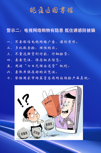 为普及提高消费者自我维权意识和能力,引导消费者科学、合理、文明消费,2022年3月15日槐荫区新时代文明实践中心、槐荫区图书馆举办“消费者权益日防诈骗普法宣传线上展览”为广大读者普及消费者权益相关知识。