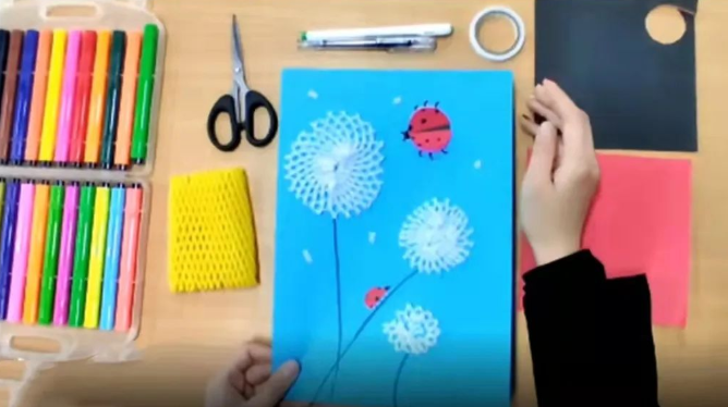 本着“节约资源,保护环境,用创意点亮生活”的宗旨,本次活动中,槐图吕老师带领读者用生活中常见的泡沫水果网制作精美的蒲公英装饰画,通过开展爱幼部落手工课堂活动,培养儿童读者的兴趣爱好,锻炼动手创作能力。