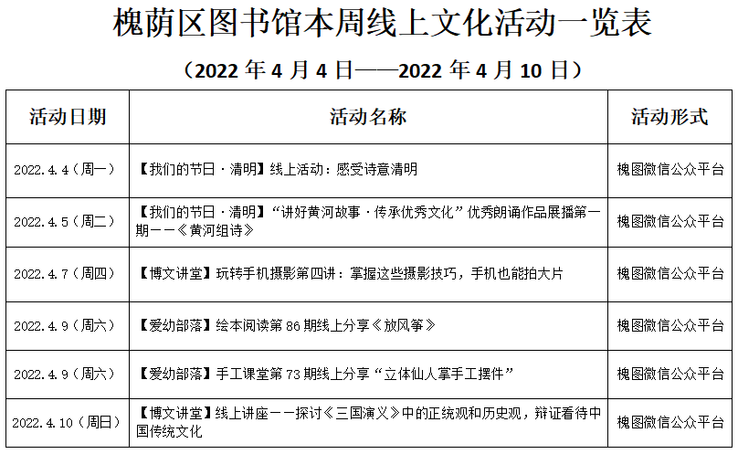 活动预告|槐图本周线上活动上新啦!(4月4日-4月10日)