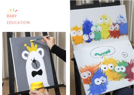 亲子画,教学对象为3—5岁的小朋友与其父母。本课程指导父母陪同小朋友学绘画,父母用语言上的引导,尽量让小朋友自己动手,让他们尝试各种工具产生的不同效果,甚至可以用手指直接作画,锻炼小朋友的感统能力,不要怕脏不要怕错,天马行空任小朋友发挥,无限可能地激发小朋友的潜能。