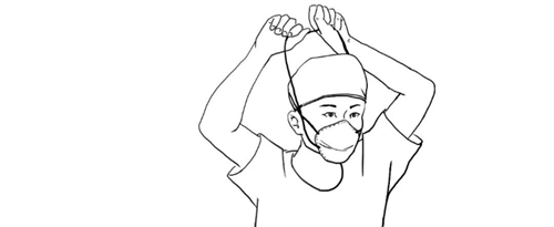 不接触内外侧;挂耳式双手同时捏住系带摘下,头戴式先摘除颈部系带,再摘除上部系带摘下。