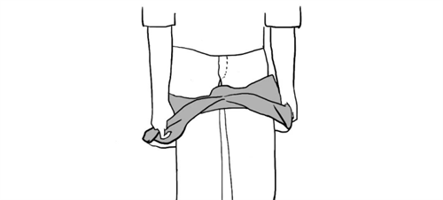 包裹防护服裤脚,有系带的还应系好系带,将系带活结系于外脚踝侧,系带系好后不应过长,避免接触地面。