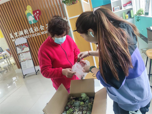 目前,疫情防控形势严峻,部分居民容易产生恐慌和心理压力等消极情绪,美里湖社工站借助园艺疗法,结合心理疏导,与居民一同养护绿植,有效缓解了居民的心理恐慌,帮助居民保持积极心态,度过疫情难关。