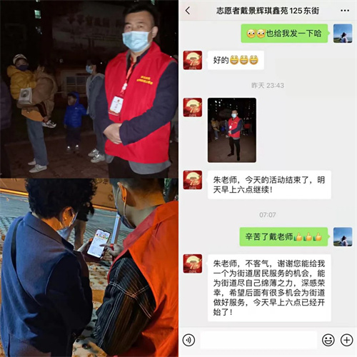 从晨光熹微到星月辉映,青年志愿者们始终坚守战“疫”一线。志愿者戴景辉表示,能为街道尽自己绵薄之力,深感荣幸,希望以后还有机会参与街道的志愿服务活动。志愿者队伍中,有因疫情居家办公的老师,有独立运营公司的青年企业家,也有居家学习的青年学生,他们身穿防护服,拉起警戒线、贴好一米线,登记居民信息,督促保持一米距离……