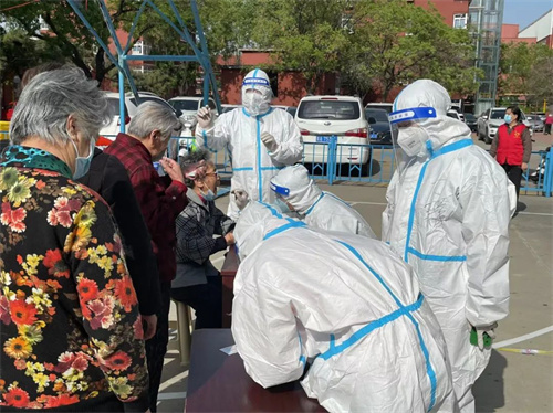 自递交请愿书以来,槐荫书协14名志愿者的身影活跃在“三区”、核酸点等一线里,穿梭在核酸检测、信息登记、卡口执勤、秩序维护等工作中。4月23日,槐荫区政协委员、槐荫区侨联委员、槐荫区书法家协会副主席兼秘书长丁群,槐荫区书法家协会副主席马凯、理事于金可再次请战,与5名民政干部携手奋战在腊山街道管控区防疫一线。