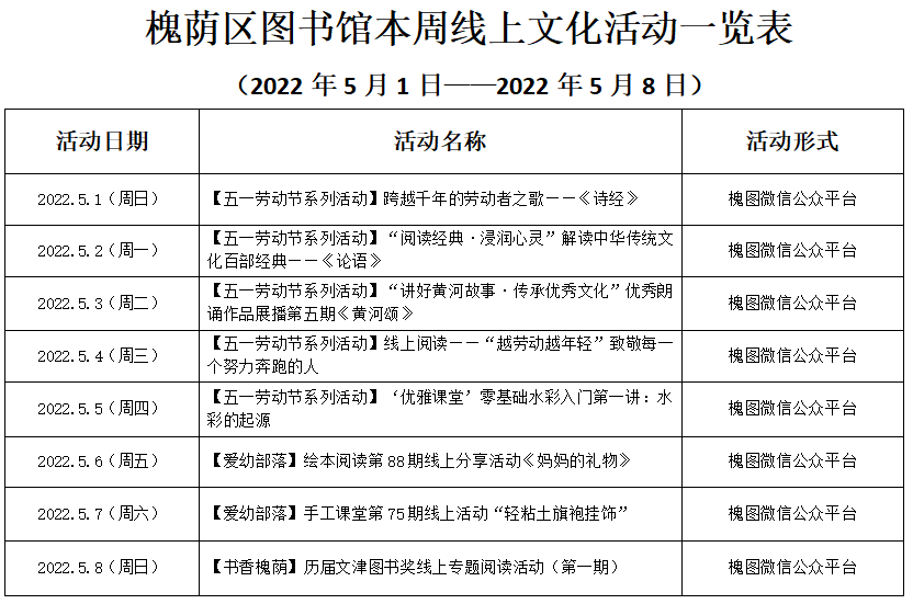 活动预告|槐荫区图书馆五一劳动节系列活动上新啦!(5月1日-5月8日)