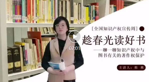 讲座简介:四月,春意正浓。然而疫情之下,我们不能“胜日寻芳泗水滨”,但是线上阅读亦可以“枕上诗书闲好处”。世界读书日主旨宣言中提到,享受阅读带来的乐趣,希望都能尊重和感谢为人类文明作出巨大贡献的文学、文化、科学思想大师们,都能保护知识产权。你知道每年的4月26日是“国际知识产权日”么?你知道今年知识产权宣传周的主题吗?你对知识产权了解多少,又能做些什么呢?那让我们一起来聊一聊与图书有关的知识产权保护吧!