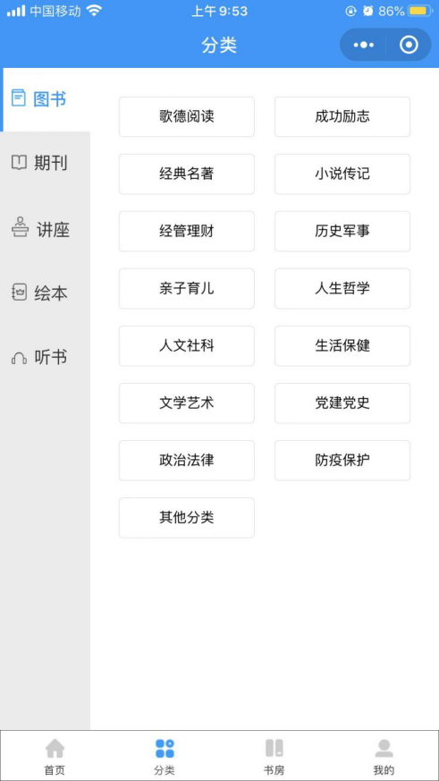 为满足市民读者的精准读书需求,“泉民悦读”小程序还提供了分类搜索,方便市民读者选择自己喜欢的文学作品分类。