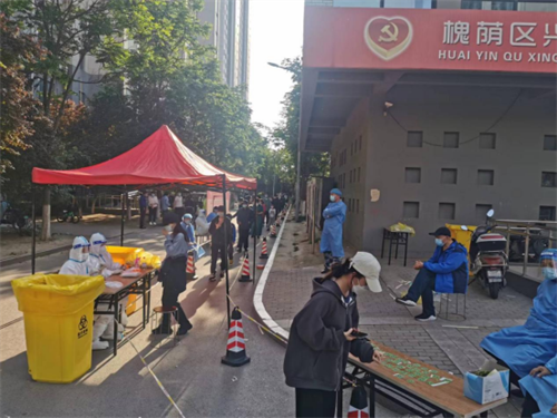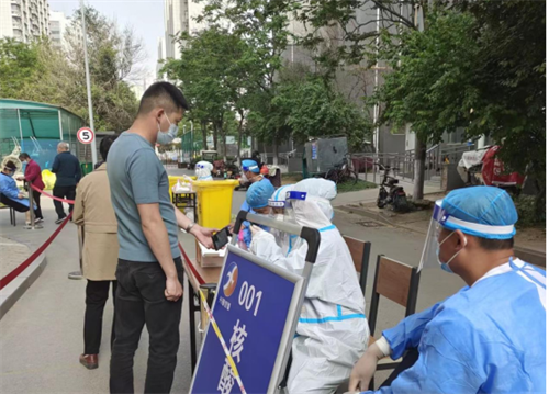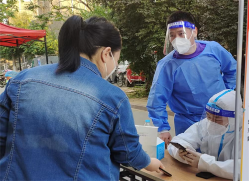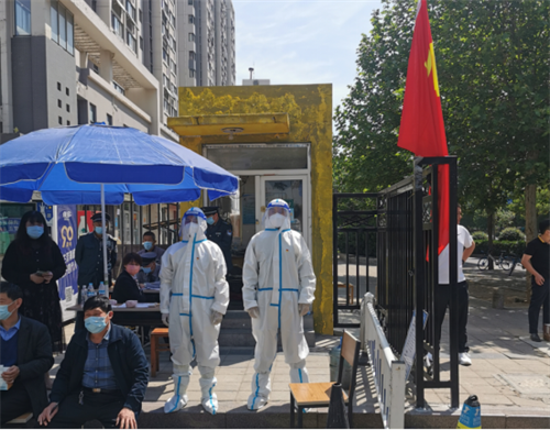 老党员李少荣、彭彪、王传章第一时间来到核酸检测点参与核酸检测、秩序维护工作。党员志愿者宋德川、赵世浩、彭俊杰、张伟丽,预备党员赵龙春、王文一,不畏艰辛,在疫情面前敢于冲锋,坚守在核酸检测点出入口,引导社区居民进行扫码登记、核酸检测。