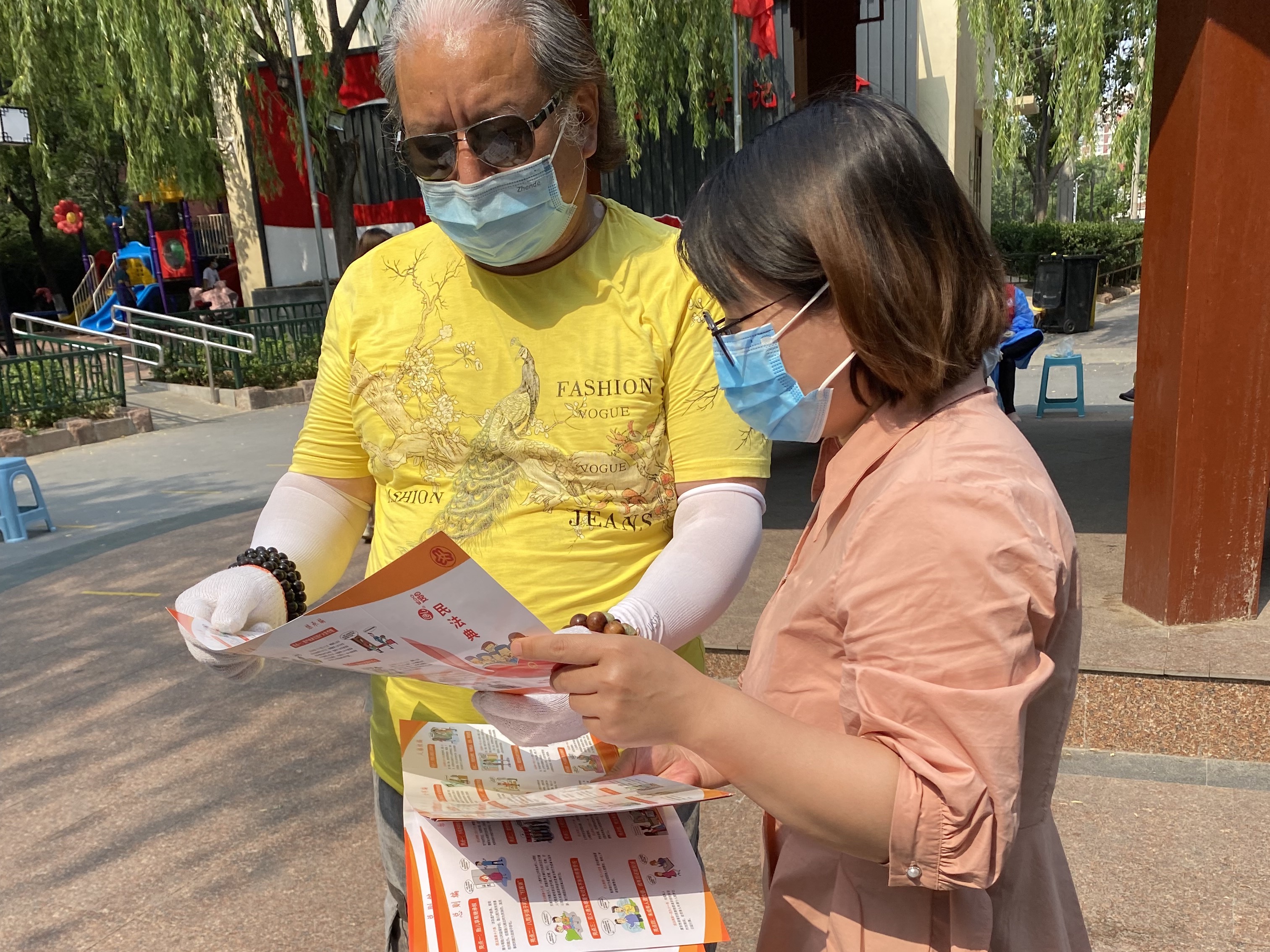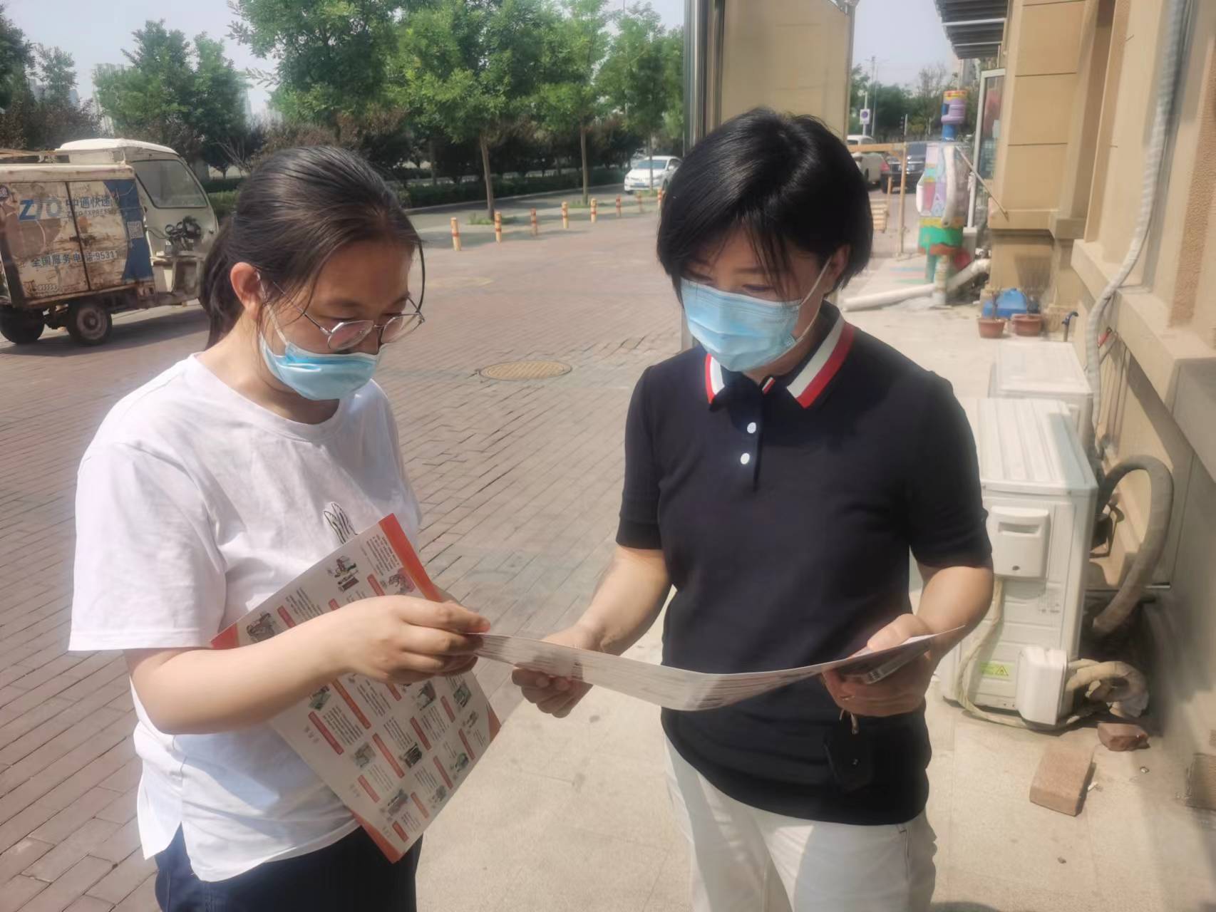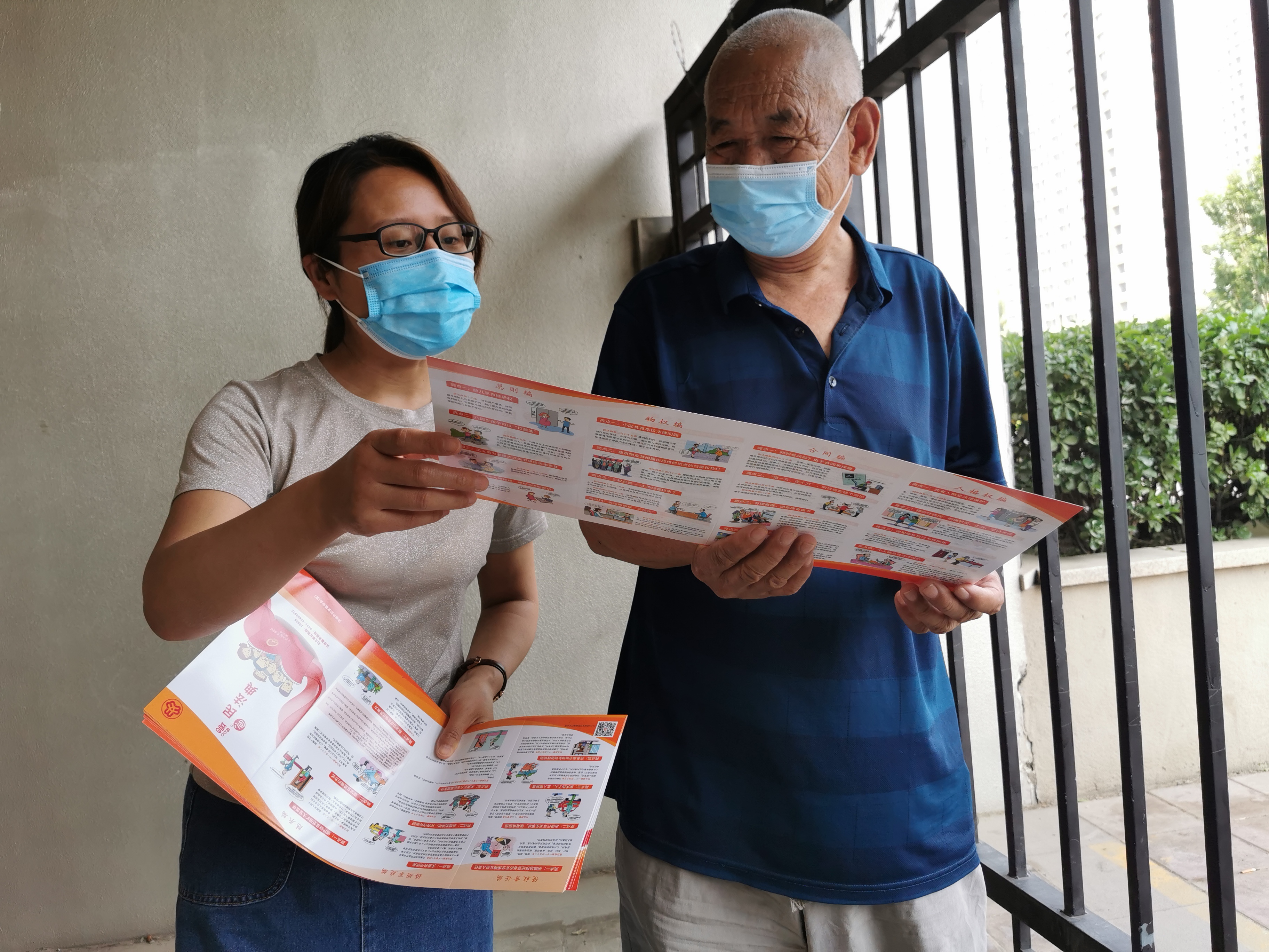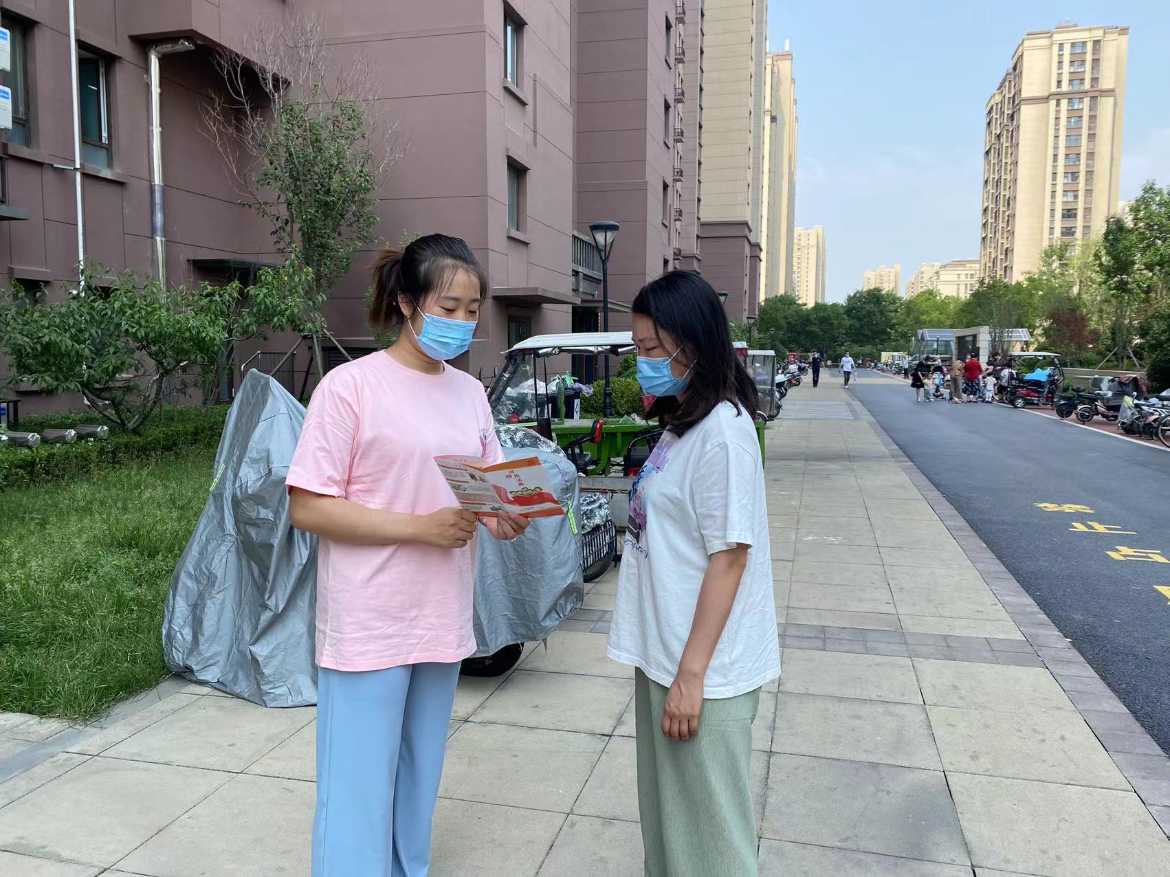 工作人员结合核酸检测积极开展,向群众发放《民法典》宣传册,做到“核酸+宣讲”两结合。