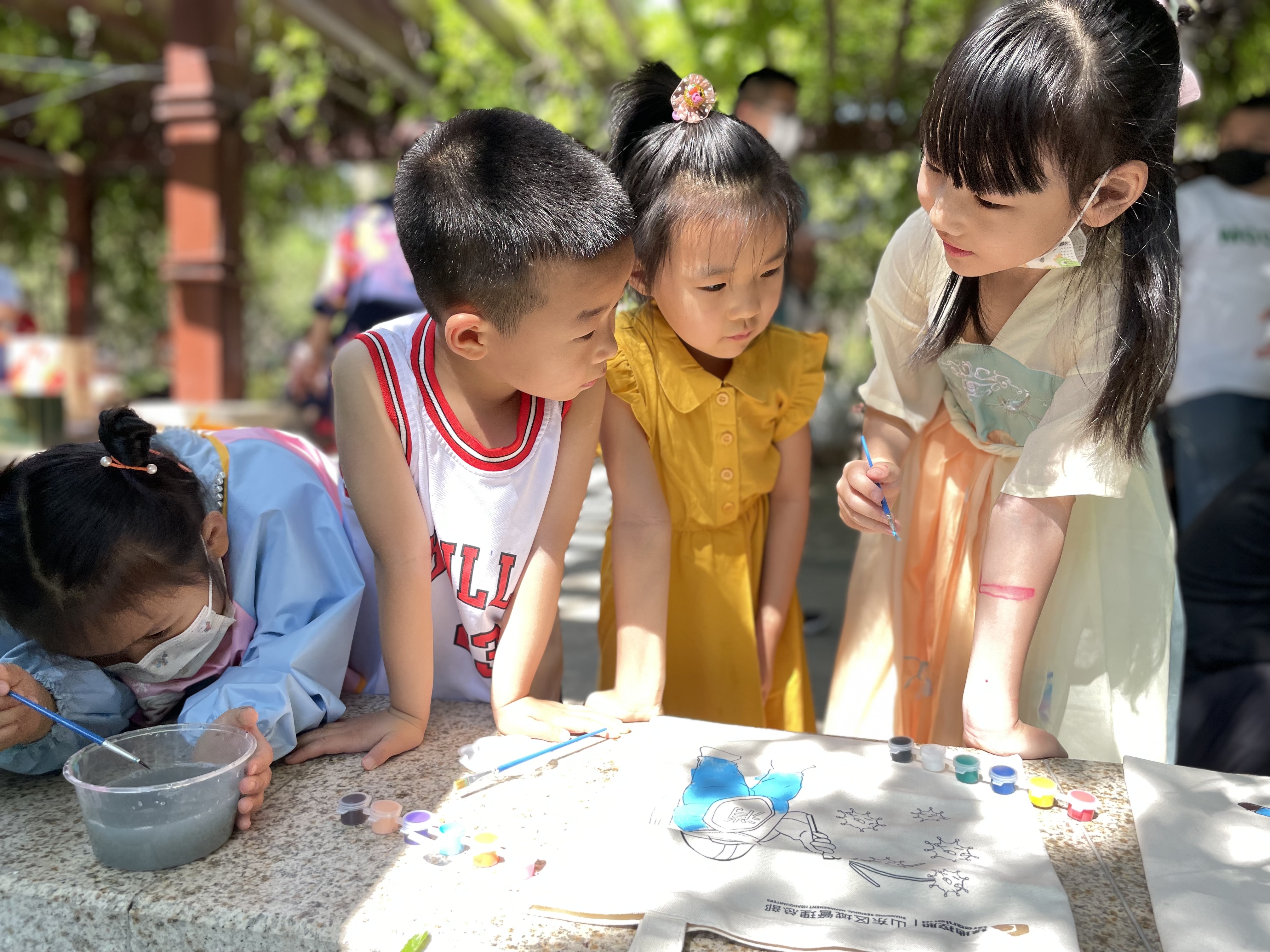 “这里我们涂蓝色吧”“你看,我的画好啦”......抗疫主题帆布袋DIY彩绘活动现场充斥着孩子们欢乐的笑声。小朋友们尽情翱翔在色彩斑斓的世界,想象力爆棚,小小画笔在小业主们的巧手中上下挥舞,不一会,就将抗疫帆布袋绘制得栩栩如生。