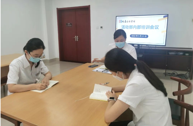 本次培训中,活动部负责人首先就近期开展的图书馆服务宣传周系列活动进行了复盘,大家共同梳理了各项活动细节,及时发现问题并改进。随后,活动部共同对即将来临的六一儿童节及端午假期开展的文化活动进行了讨论,并明确了工作职责。培训过程中,负责人强调馆员应对自己的角色定位更加清晰,履行好图书馆工作人员服务人民群众的职责。