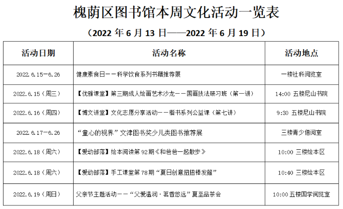 活动预告|槐图本周活动上新啦!(6月13日-6月19日)