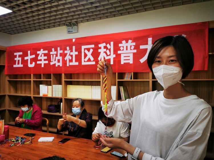 为丰富社区居民的精神文化生活,增强居民的动手和思维能力,拉近居民之间的情感交流,弘扬中华传统文化,自5月25日起每周三上午,张庄路街道五七车站社区科普大学邀请胡立华老师在社区活动室组织开展“巧手编织 精彩生活”为期四期的专项主题活动。