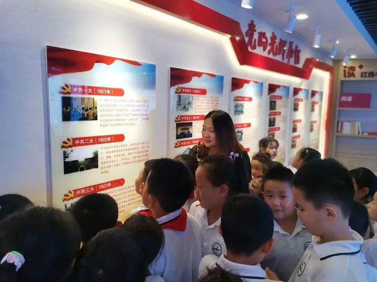 在老师的带领下,小朋友们沿着党建活动室一路参观。首先映入眼帘的就是“党的光辉历程”——党史文化墙。墙上一幅幅记录党史的画卷,描绘了一个个生动的场景,孩子们注视着这些画卷,用心感受中国共产党波澜壮阔而又绚丽多彩的辉煌历史。在参观过程中,不时有家长向孩子们讲解党史,在他们绘声绘色的讲述中,孩子们深入了解到中国共产党从成立到壮大所经历的点滴,也重温了那段艰辛的革命历史。