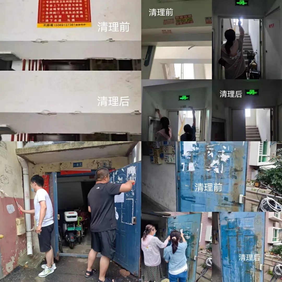 “一周大扫除”活动重点针对辖区卫生环境“脏”“乱”“差”进行攻坚。清除楼院小广告、清理楼道杂物;清理僵尸车、破旧自行车;清除绿化带内垃圾,整理公益标识牌;修缮台阶破损处等。槐荫区“一周大扫除”活动如火如荼开展,也收获了居民群众的美誉好评。