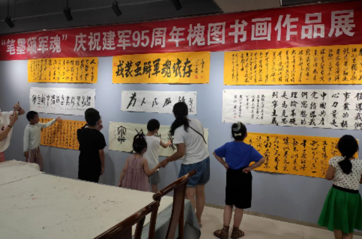 “丹青绘河山,妙笔赞中华”,2022年8月1日,在迎来中国人民解放军建军95周年之际,槐荫区新时代文明实践中心、槐荫区图书馆举办庆祝八一建军节——“笔墨颂军魂”庆祝建军95周年槐图书画作品展活动,旨在大力弘扬军爱民民拥军的光荣传统,不断发展坚如磐石的军政军民关系。