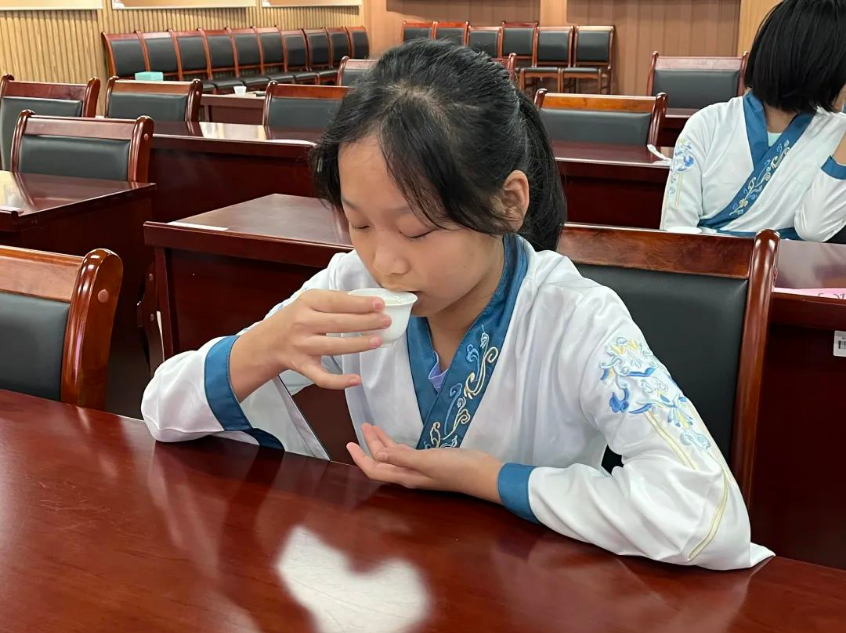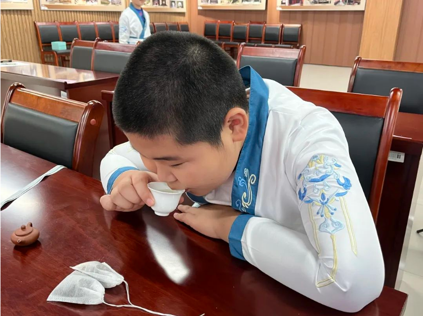 随后,徐老师现场演示了不同品类茶叶的冲泡流程,形象生动的展示了中华传统茶艺的魅力。小读者们拿过茶杯,轻轻啜上一口,细细品味茶香,大家在徐老师精心营造的优雅环境氛围中,得到了美的享受和情操的熏陶。