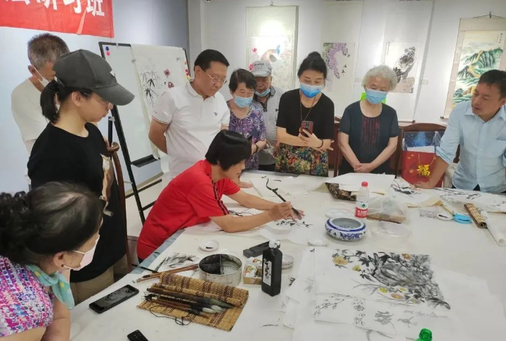 虽然天气炎热,但读者们学习热情丝毫不减,大家早早来到教室,互相交流国画学习心得。