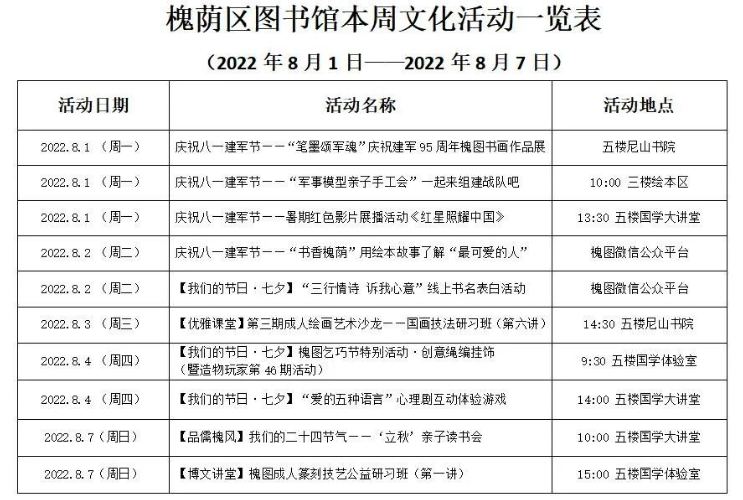 活动预告|槐图本周活动上新啦!(8月1日-8月7日)