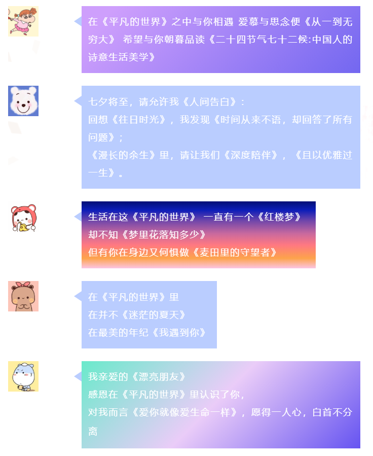 我们的节日·七夕|“三行情诗诉我心意”线上书名表白活动微信留言公布,快来看看有你的留言吗